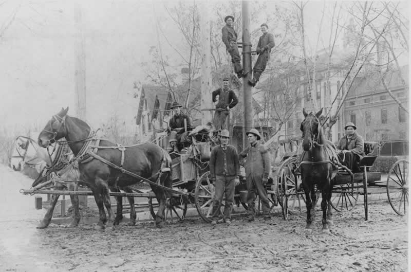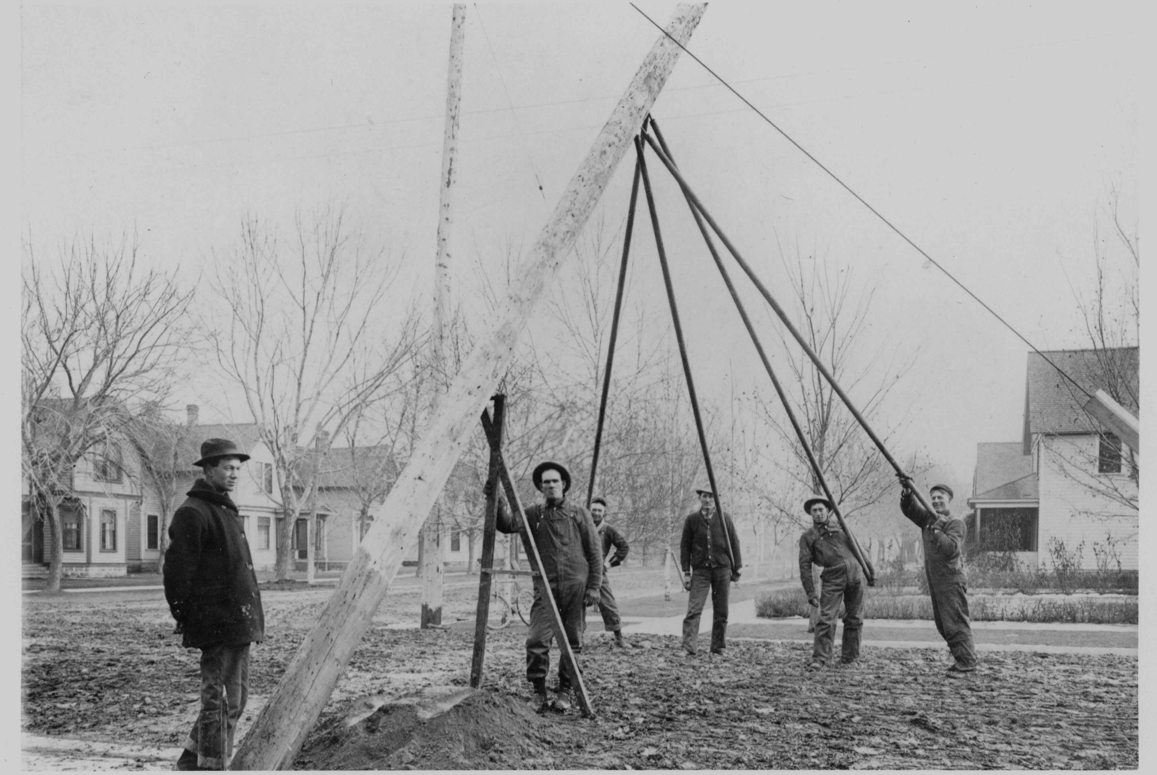 This photo of the crew setting an electric pole was taken near M.C. Venable's place on South 16th. My grandfather is the fellow 3rd from the right.